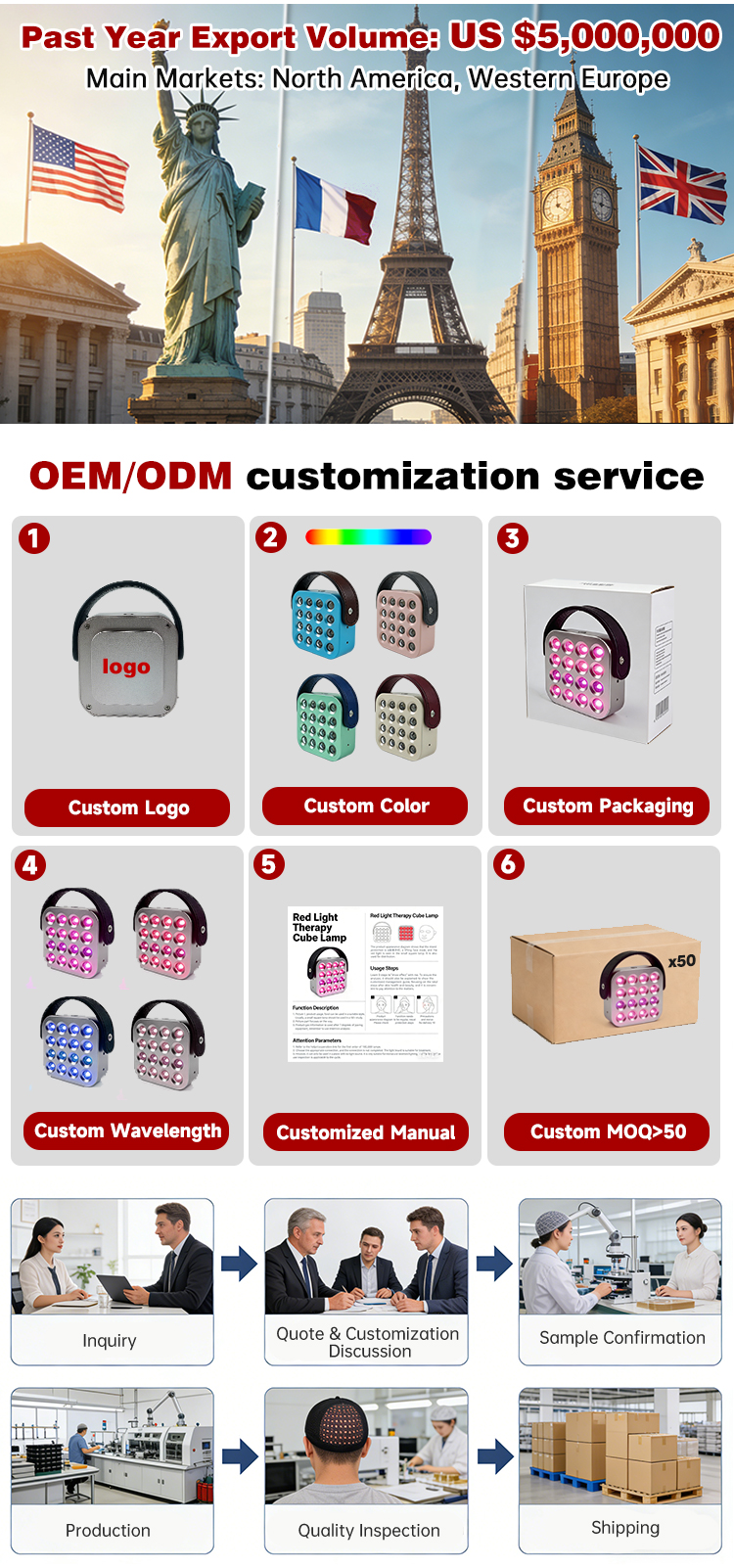인증받은 중국 제조업체 와 협력하면 최첨단 규격 준수 RLT 기기를 대규모로 공급받을 수 있습니다. 강력한 품질 관리, 민첩한 맞춤 제작, 검증된 수출 실적을 갖춘 공급업체에 집중하여 2026년 웰니스 시장 성장을 활용하십시오.