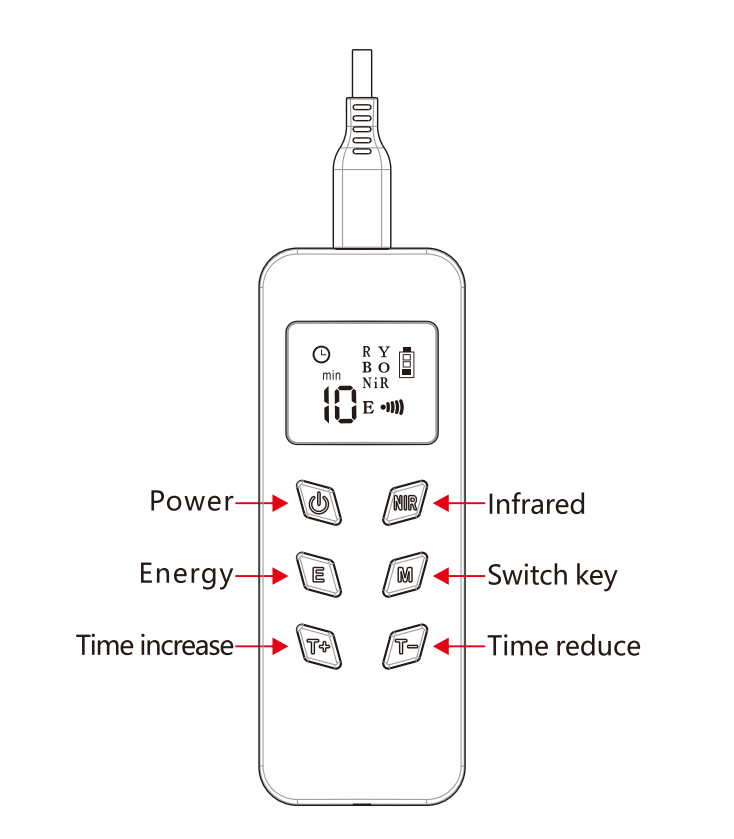 3 . Light time timing key: press the T + button to increase the light time Press the T-button to reduce the light time 5 gears (10 / 15 / 20 / 20 / 25 / 30min) single use recommended for 15-25 minutes.